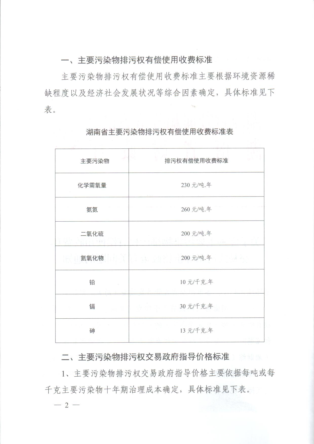 根據《湖南省人民政府關於印發〈湖南省主要汙染物排汙權有償使用和交易管理辦法〉的通知》(湘政發〔2014〕4號)和《湖南省主要汙染物排汙權有償使用收入征收使用管理辦法》(湘財綜〔2014〕32號)規定,為進一步完善排汙權有償使用和交易價格體係,結合我省主要汙染物排汙權有償使用和交易的實際,現就有關問題通知如下: