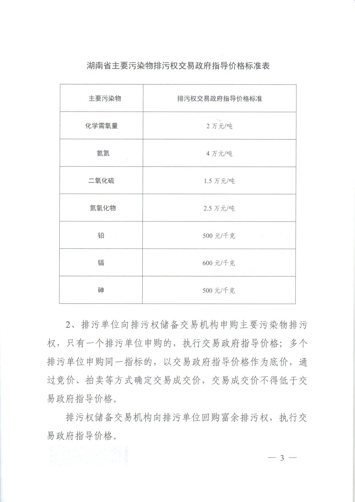 湖南省主要汙染物排汙權交易政府指導價格標準表