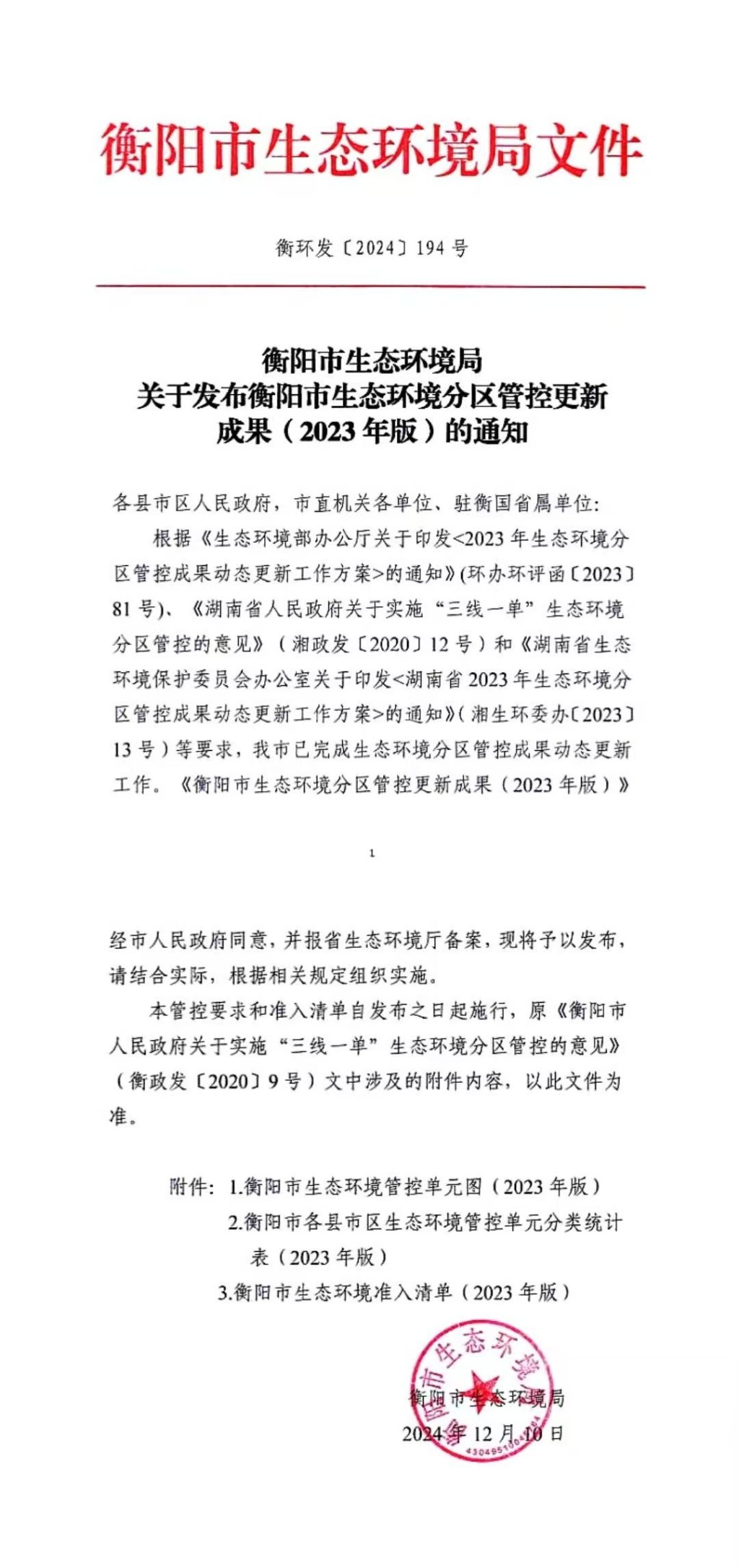 衡陽市生態環境準入清單(2023年版)