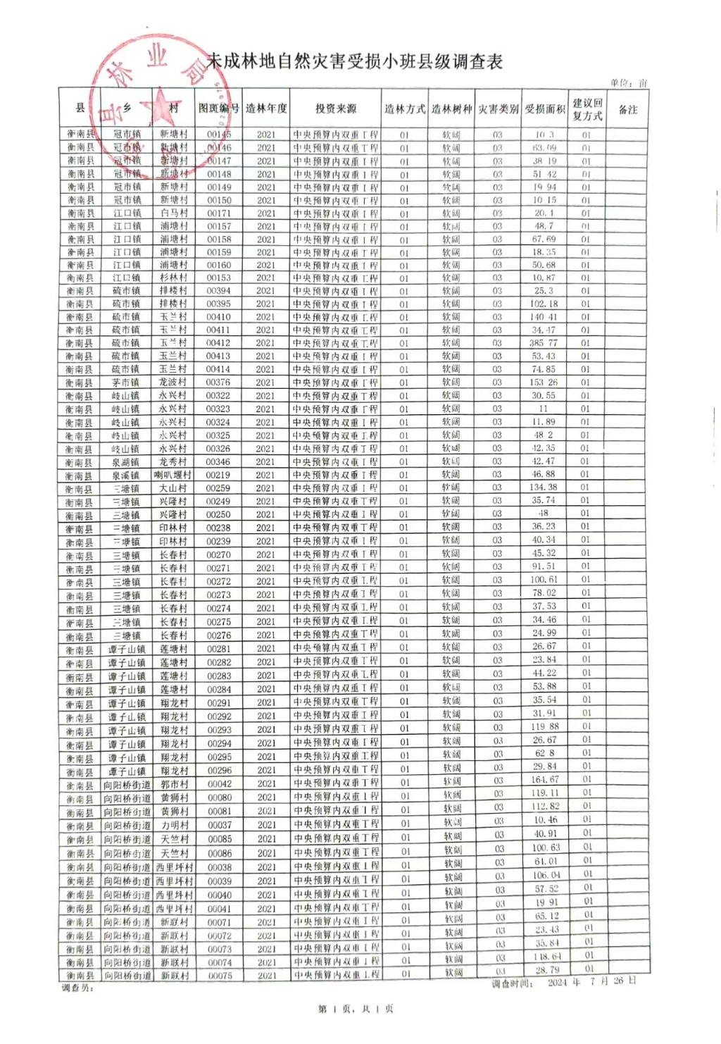 未成林地自然災害受損小班縣級調查表