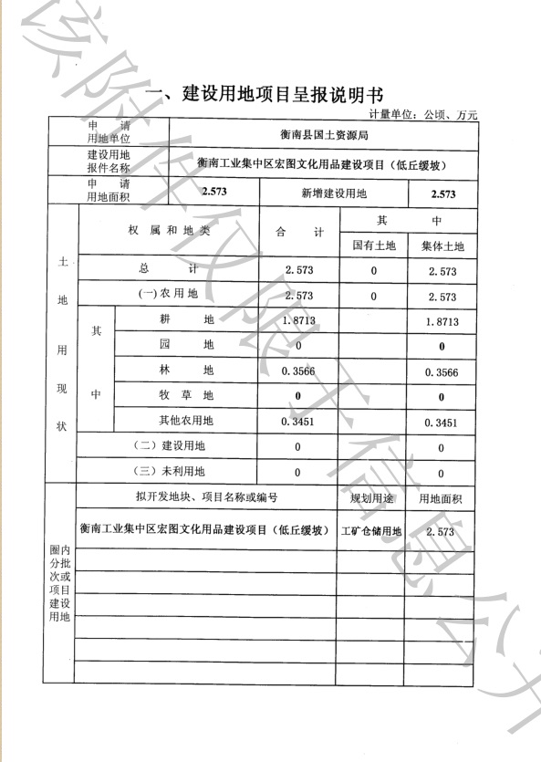 衡南縣工業集中區宏圖文化用品建設項目(低丘緩坡)