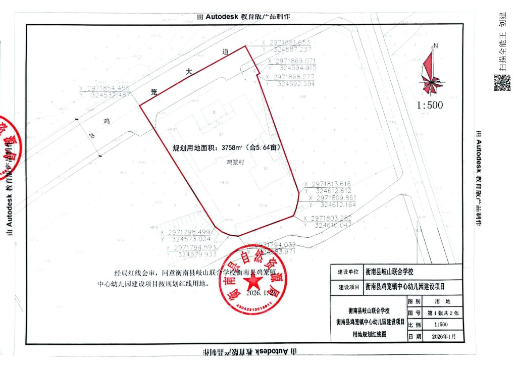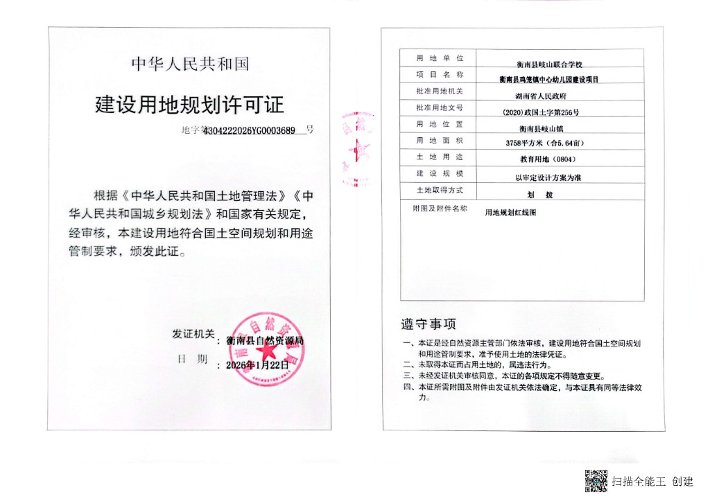 衡南縣建設用地規劃許可證公示(衡南縣雞籠鎮中心幼兒園建設項目)