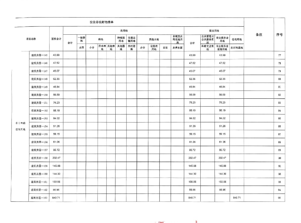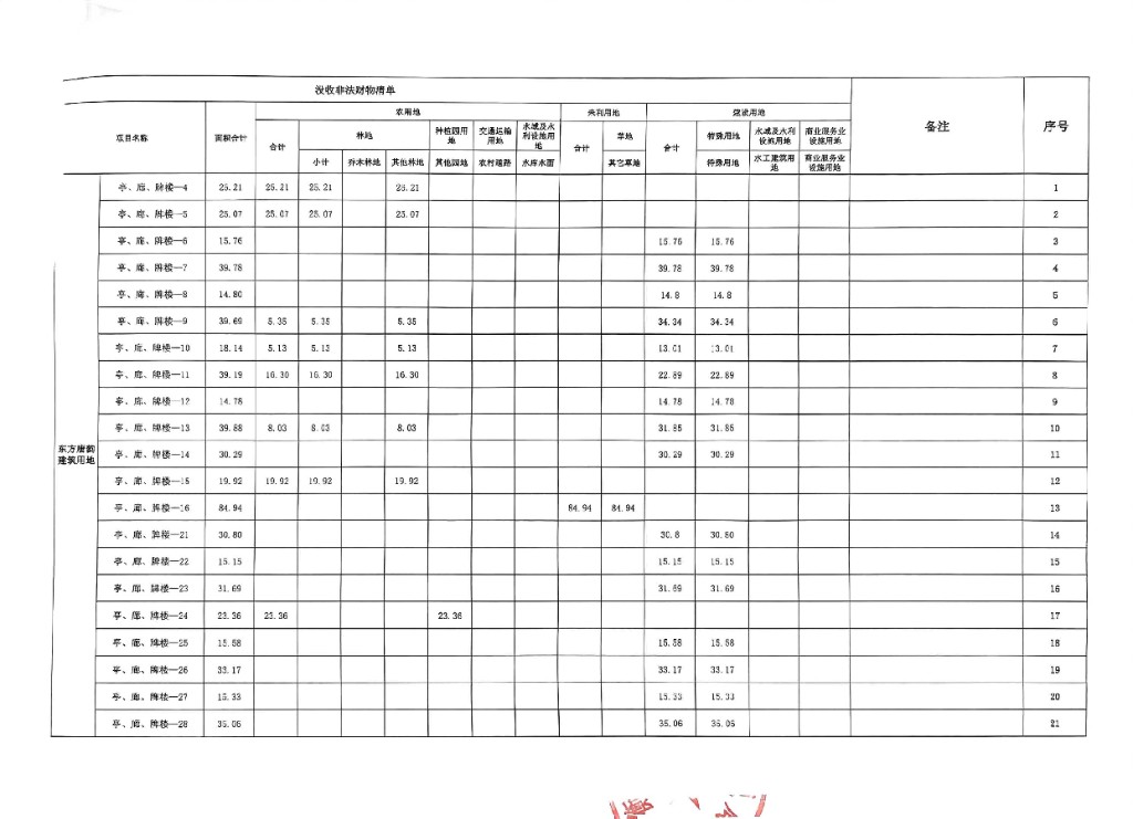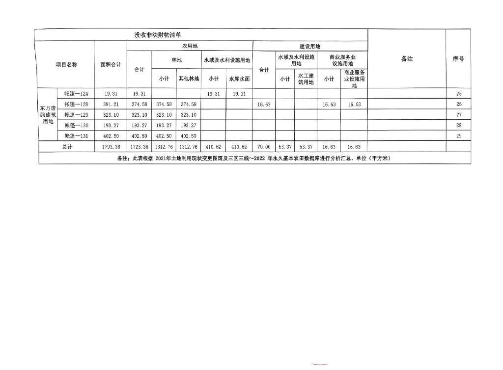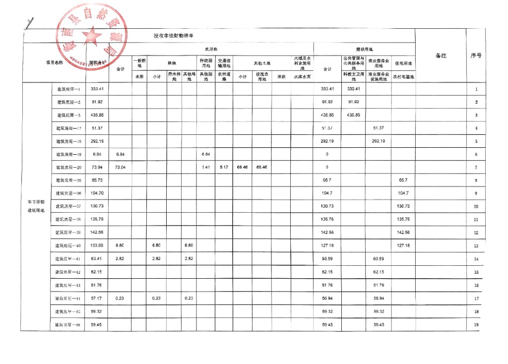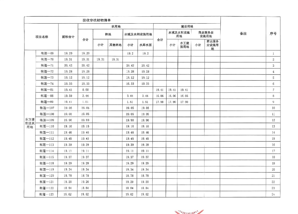 衡南縣東方唐韻農業開發有限公司違法用地沒收清單公示