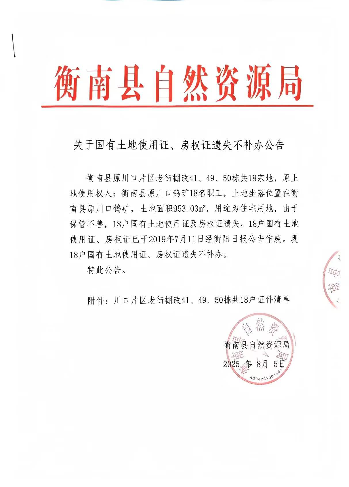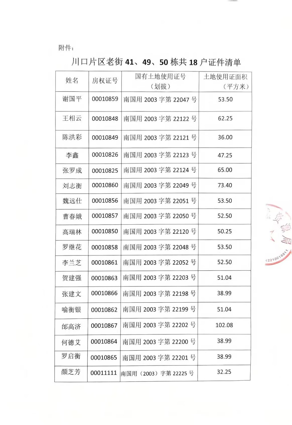 關於國有土地使用證、房權證遺失不補辦的公告(川口片區老街棚改41、49、50棟共18宗地)