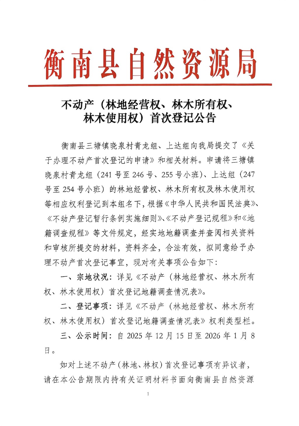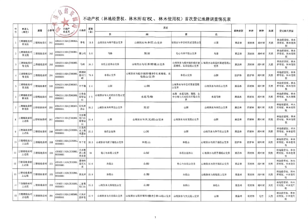 不動產(林地經營權、林木所有權、林木使用權)首次登記公告(三塘鎮曉泉村青龍組)