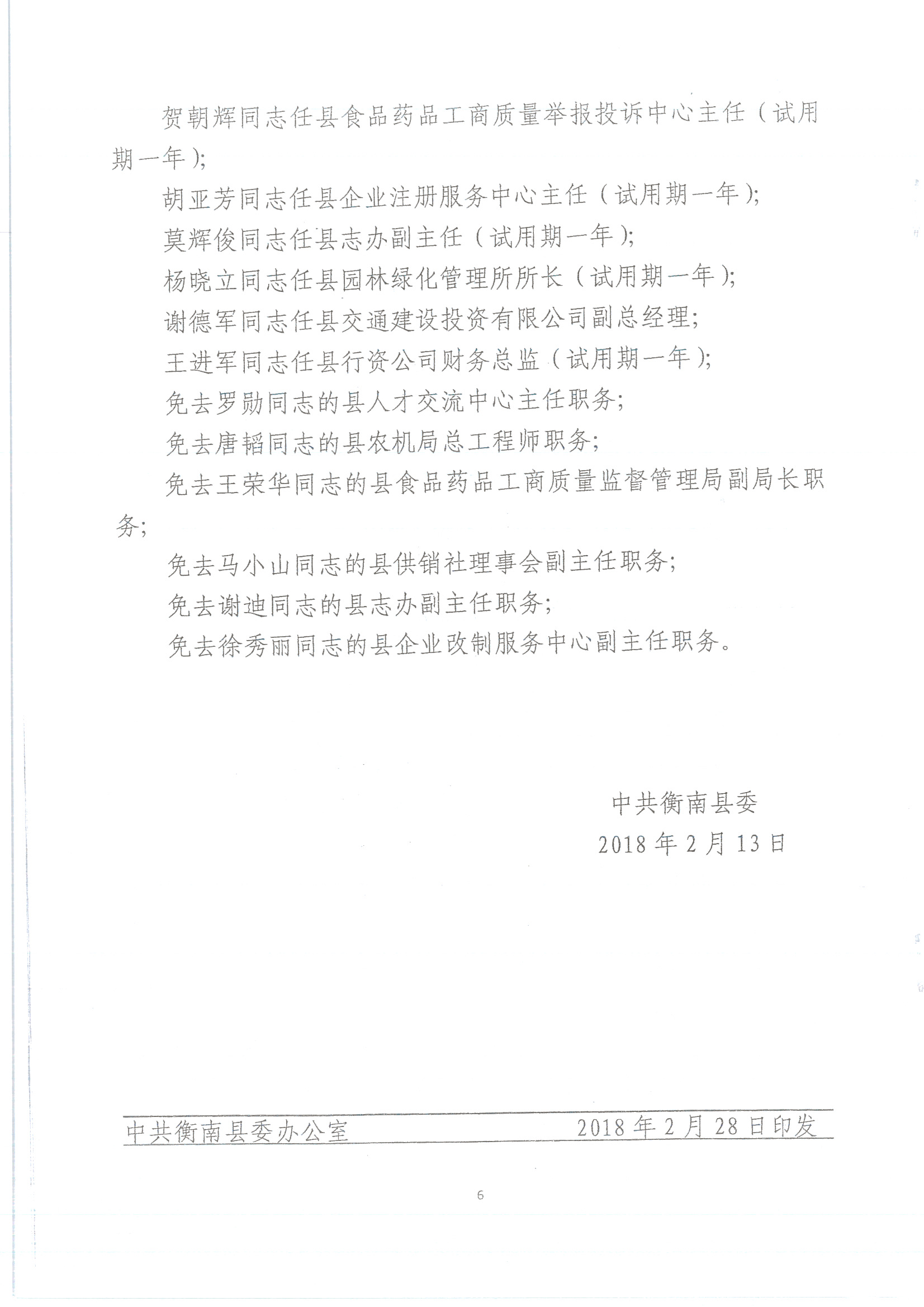 關於提名魏罡等同誌職務任免的通知