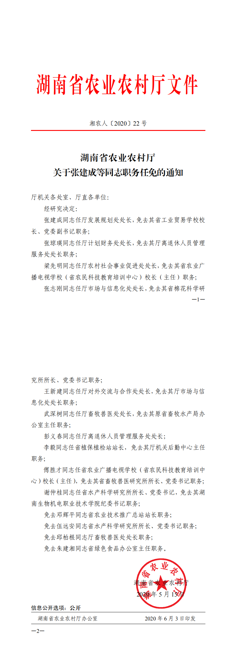 湖南省農業農村廳關於張建成等同誌職務任免的通知