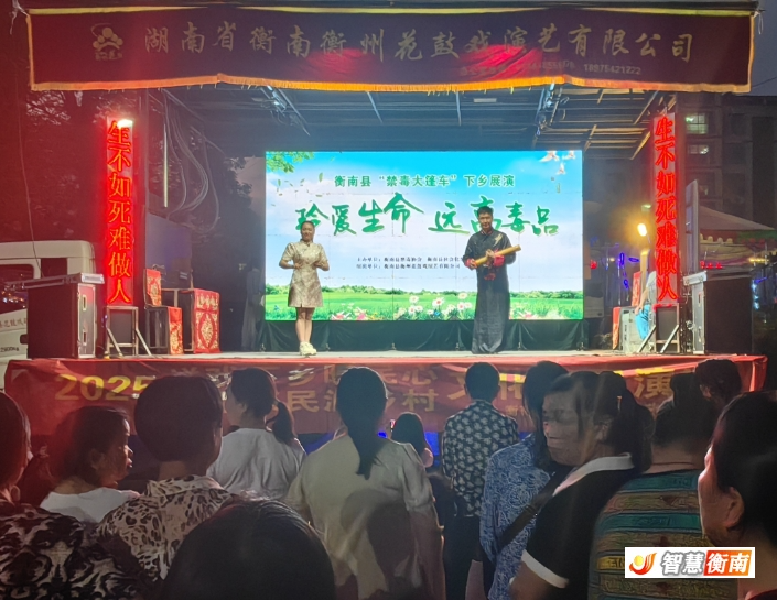 "在家門口就能看到這麽精彩的戲曲演出,還能學到禁毒知識,這樣的活動太有意義了!"家住三塘鎮的李大叔高興道。5月13日晚,由衡南縣文旅廣體局、縣禁毒社會化事務中心聯合主辦,縣衡州花鼓戲演藝有限公司承辦的"送戲下鄉"文化惠民演出活動在三塘鎮人民廣場上演。