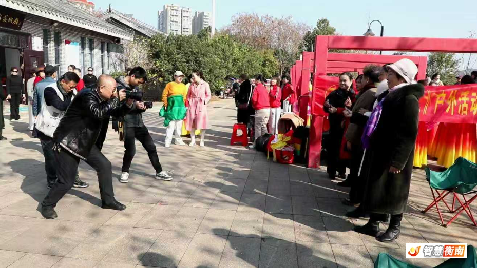 1月8日上午,衡南縣文化館和美術館迎來了打扮精致、穿著喜慶,組團前來打卡拍照的群眾。攝影師們拿著"長槍短炮"調試設備、測試機位,並指導大家擺出俏皮、優雅的姿勢,用鏡頭定格大家燦爛的笑容。