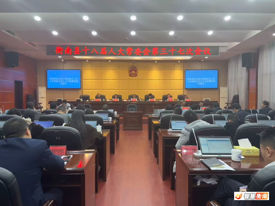 會議審議通過了關於召開衡南縣第十八屆人民代表大會第七次會議的決定(草案),聽取和審議了2025年度國省市縣人大代表集中視察情況報告,書麵審議了縣人民政府關於《2024年度國家、省、市、縣人大代表集中視察審議意見》落實情況報告,聽取和審議了部分國家機關工作人員和部分市人大代表履職情況報告,並對其履職情況進行了滿意度測評。