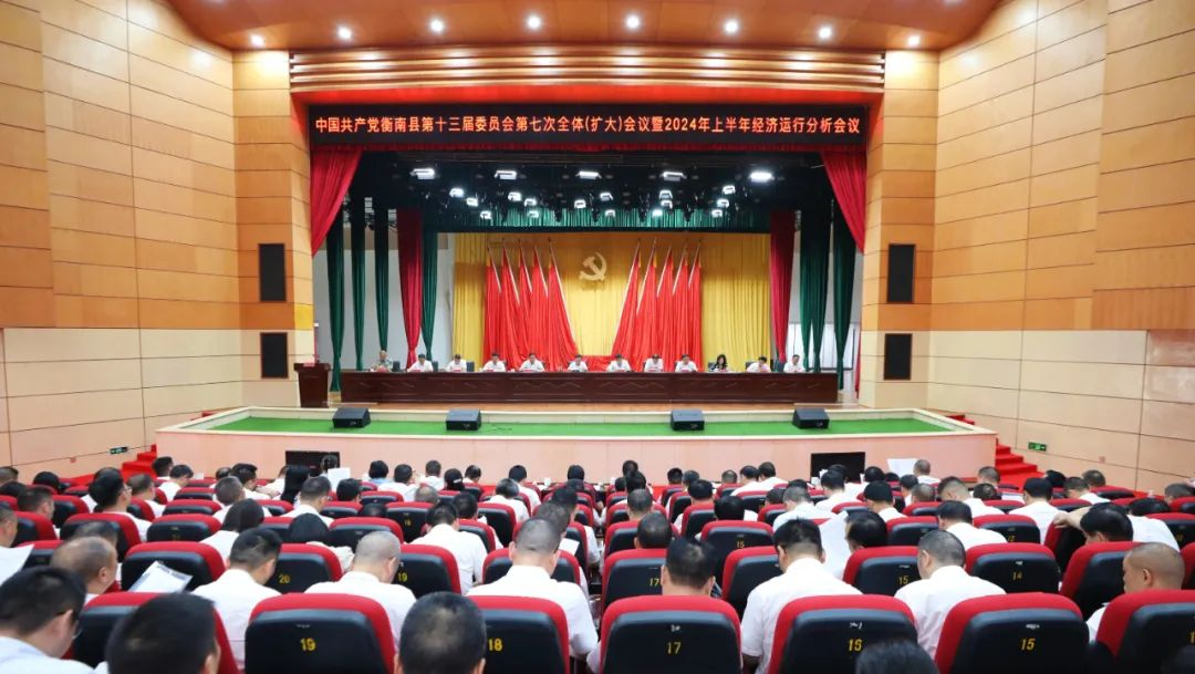 8月22日上午,中國共產黨衡南縣第十三屆委員會第七次全體(擴大)會議暨2024年上半年經濟運行分析會議召開。全會聽取了縣委常委會工作報告,審議通過了《中共衡南縣委關於深入學習貫徹黨的二十屆三中全會精神大力實施"工業強縣、文教旺城"發展戰略的決定》(以下簡稱《決定》)《中國共產黨衡南縣第十三屆委員會第七次全體(擴大)會議決議》,分析了全縣上半年經濟形勢。縣委書記許達受縣委常委會委托,向全會作工作報告並講話。縣委副書記、代理縣長李仕兵講評全縣2024年上半年經濟運行情況暨重大建設項目推進情況。縣委副書記雷俊就《決定(草案)》作起草說明。縣人大常委會主任黃日榮、縣政協主席陽旭輝出席。