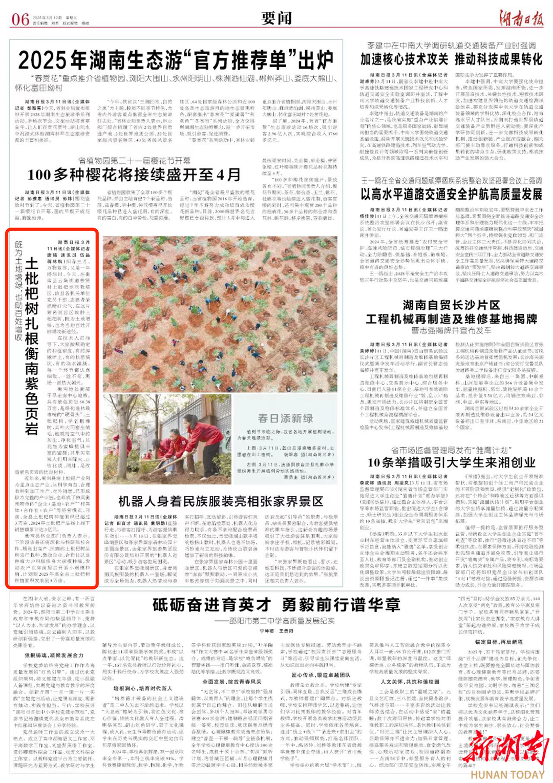陽春三月,萬物複蘇,又是一年播綠時。今天,在衡南縣雲集街道普賢村土枇杷示範栽培區,該縣各機關單位黨員幹部、誌願者搶抓晴好天氣,在這片紫色頁岩區栽種土枇杷樹,既為土地增綠,也為當地百姓開辟增收新途徑。
