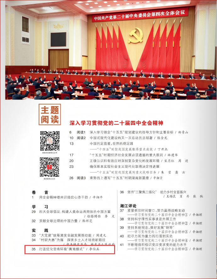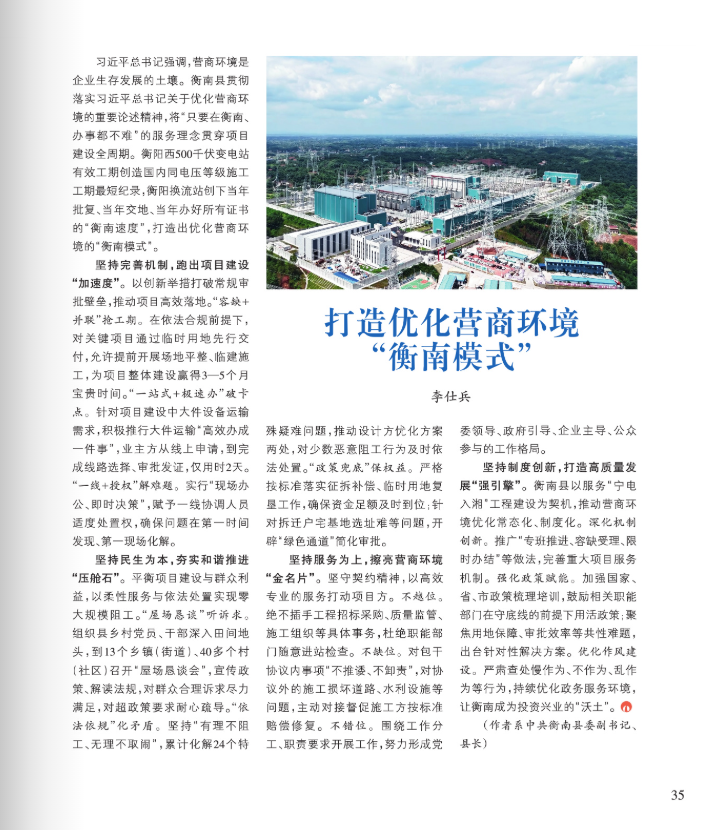 編者注:2025年第22期《新湘評論》發表了衡南縣委副書記、縣長李仕兵署名文章《打造優化營商環境"衡南模式"》。