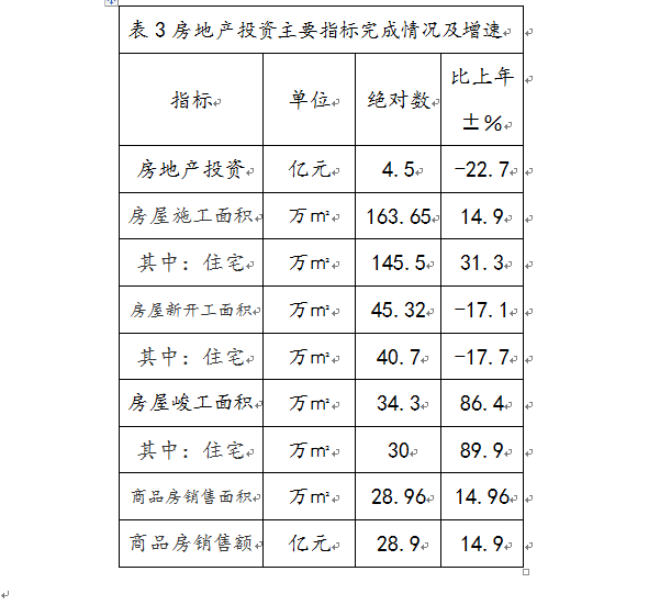 全縣固定資產投資完成193.7億元,增長20.3%。其中城鎮固定資產投資完成189.14億元,增長24.9%;房地產投資4.5億元,下降22.7%。