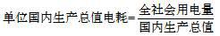 單位國內生產總值電耗 指一定時期內,一個國家或地區每生產一個單位的國內生產總值所消費的電力。計算公式為: