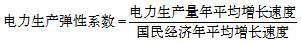 電力生產彈性係數 是研究電力生產增長速度與國民經濟增長速度之間關係的指標。一般來說,電力的發展應當快於國民經濟的發展,也就是說電力應超前發展。計算公式為: