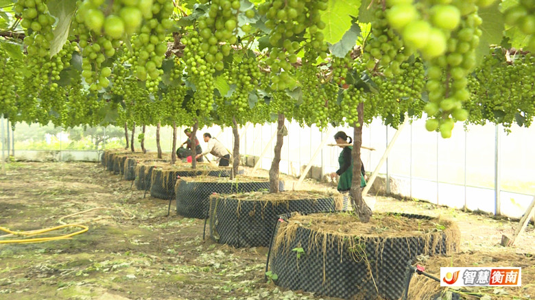 5月29日,在茶市鎮怡海村的"同心果園",一串串勻稱飽滿的"陽光玫瑰"綴滿枝頭,工作人員正穿梭其間,忙著施肥、澆水。"我在村裏果園務工,一年有2、3萬的收入,又在家門口,非常方便。"衡南縣茶市鎮怡海村"同心果園"務工人員陳宏發說。