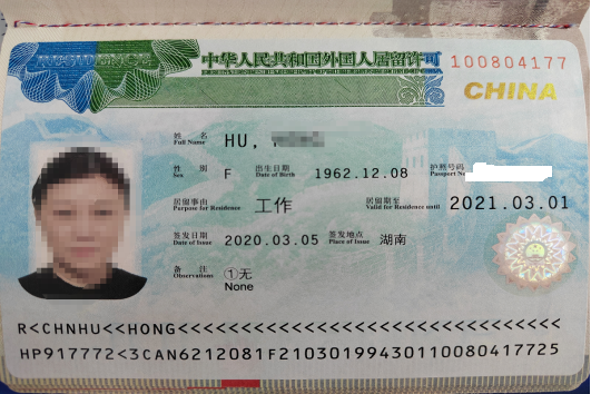 圖二:工作簽證(居留許可頁麵),識別是否為有效的工作簽證