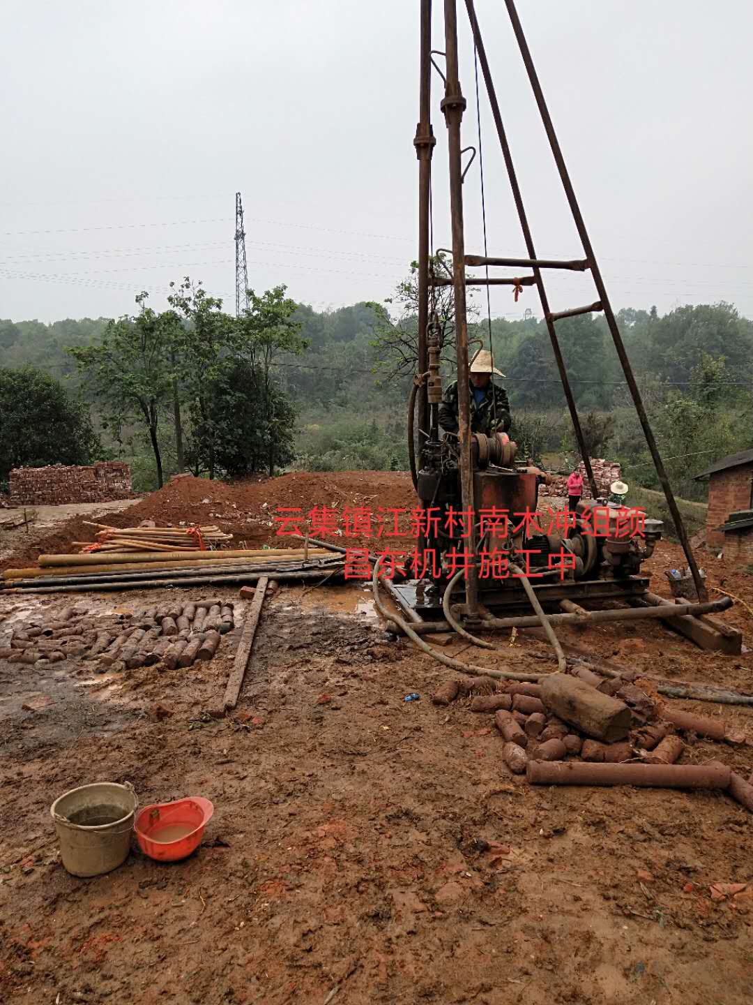 江新村南木衝組機井施工中