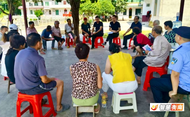 聯點幹部、村"兩委"幹部、駐村民警圍繞禁毒、防性侵、反詐打跨、防溺水、秸稈禁燒等重點工作開展屋場懇談。
