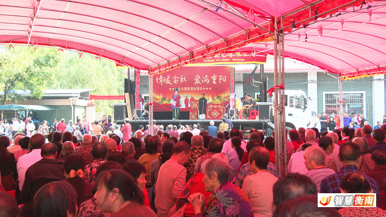 10月11日,衡南縣雲集街道黃金社區舉辦"情暖中秋愛滿重陽"係列敬老活動,邀請社區老年居民看演出、賞戲曲、品宴席,大力弘揚尊老、敬老、愛老的中華傳統美德。