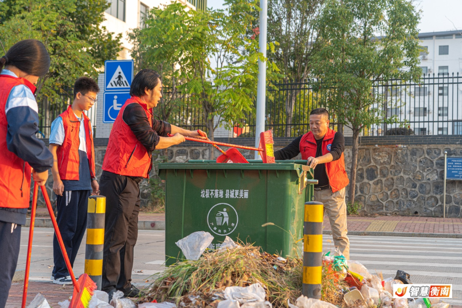 12月1日,在"12·5國際誌願者日"到來之際,衡南職專組織師生誌願者開展街道衛生清掃服務活動。