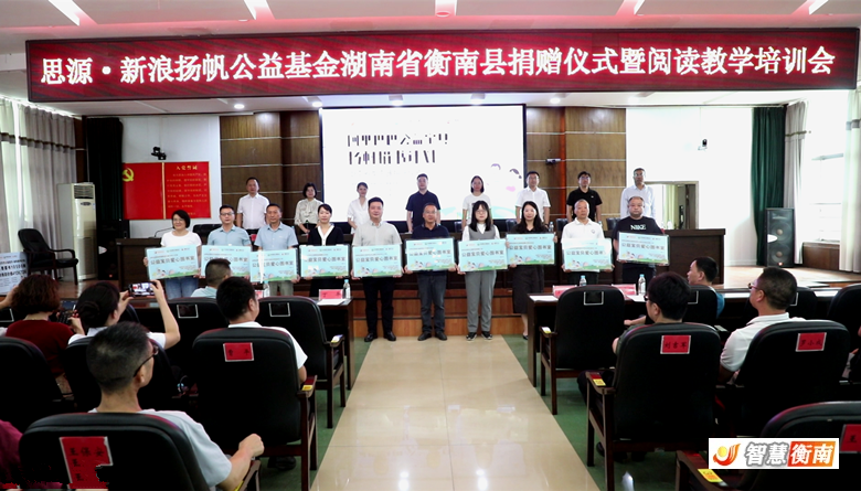 9月26日,思源·新浪揚帆公益基金湖南省衡南縣捐贈儀式暨閱讀教學培訓會在縣教育局舉行,民建湖南省委會社會服務處二級調研員李韶,思源·新浪揚帆公益基金項目部總監段顯丹,民建衡陽市委會秘書長、四級調研員肖新平,衡南縣委常委、組織部部長、統戰部部長段誌強參加,縣政府副縣長萬倩雯主持捐贈儀式。