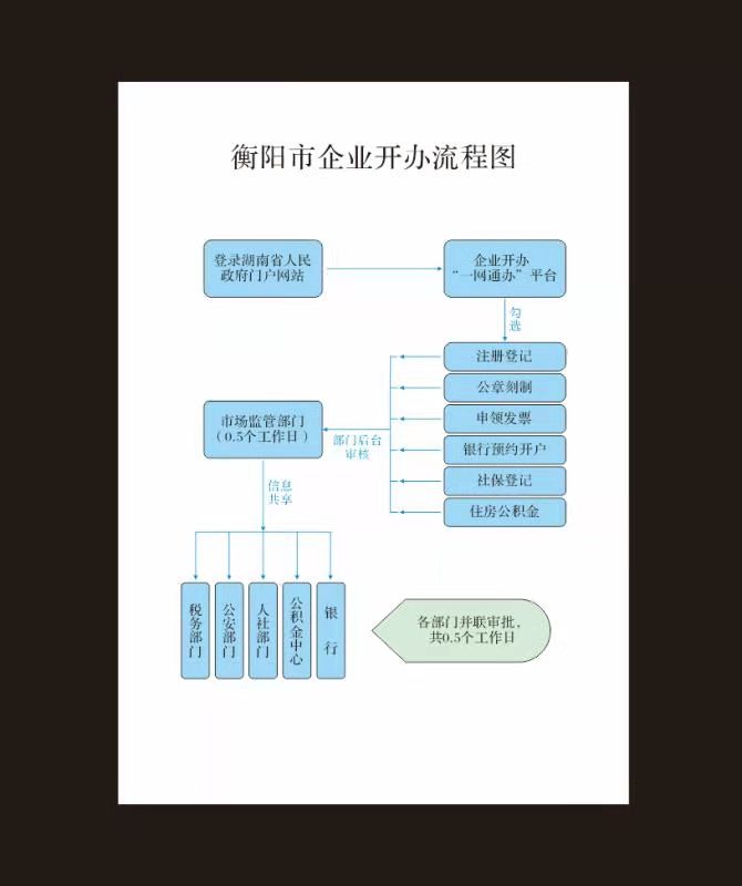 衡陽市按照"一件事一次辦"改革要求,建立企業開辦"一門進出、一次告知、一窗受理、一套表單、一次采集、一網通辦、一次辦好、一次送達"八個一工作機製,圍繞"減環節、減材料、減時限、減費用"的工作要求,實現線上"一網通辦",線下"一窗通辦"。全麵實現企業開辦一次辦結,全市企業開辦全流程(含延伸服務事項)涉及的企業設立登記、公章刻製、申領發票(含稅務Ukey及其他稅控設備)及員工社保醫保參保登記、住房公積金企業繳存登記、銀行開戶預約等六個聯辦事項組成的"一件事"一次辦結。